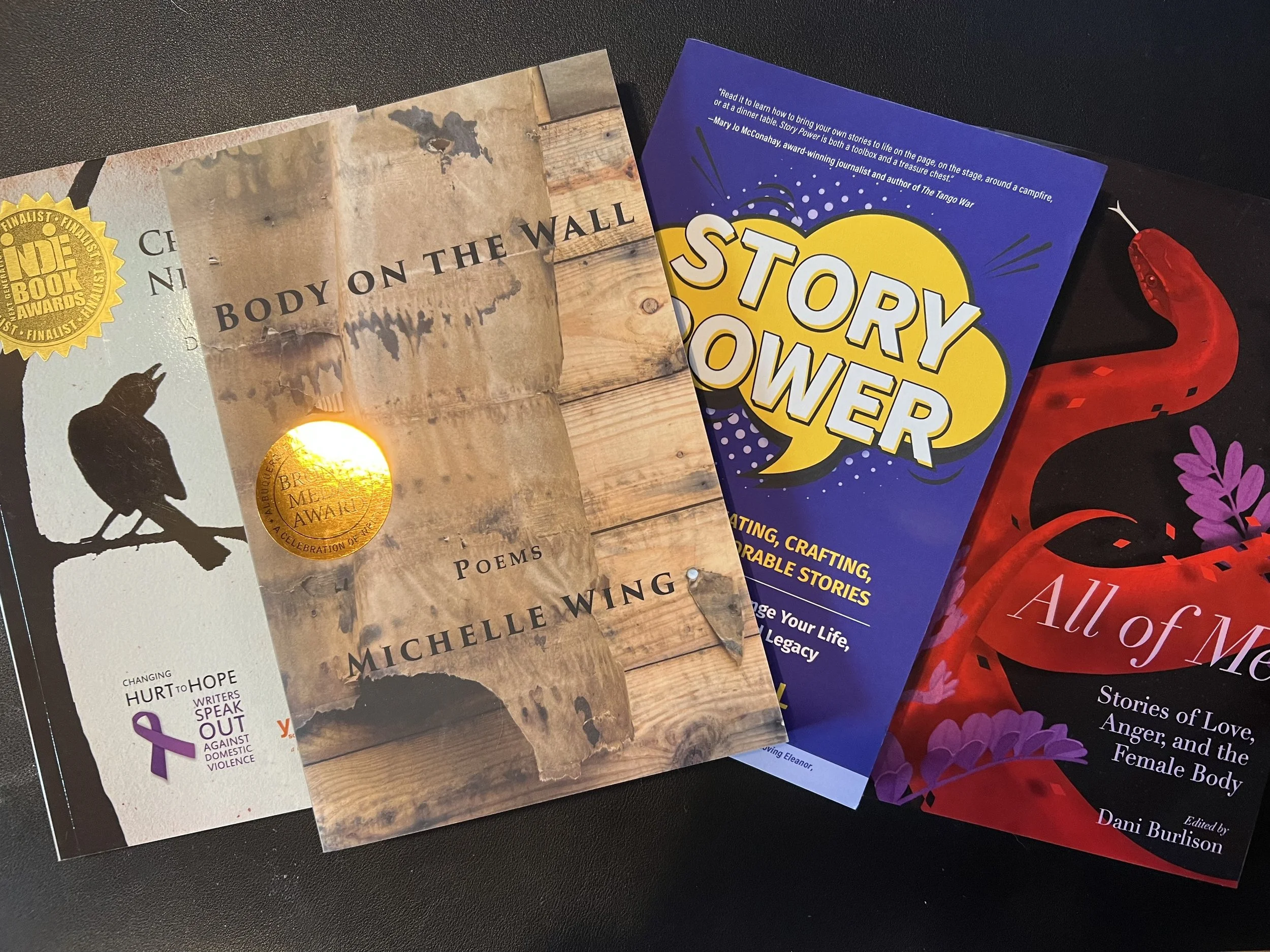 Body on the Wall: Poems (Saddle Road Press) received a bronze medal from the Albuquerque Museum Foundation, and Cry of the Nightbird: Writers Against Domestic Violence (Gray Wolf Press) was a finalist for both the Next Generation Indie Book Awards and the Indie Excellence Book Awards.